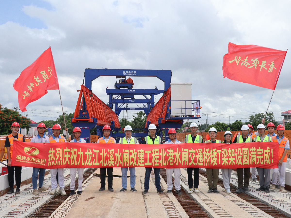 9月8日,北溪水閘改建工程北港水閘交通橋最后一片矮T梁順利鋪設(shè),為后續(xù)北港水閘上部結(jié)構(gòu)施工創(chuàng)造基礎(chǔ)。