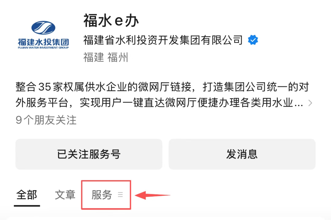 第一步:關注“福水e辦”服務號;