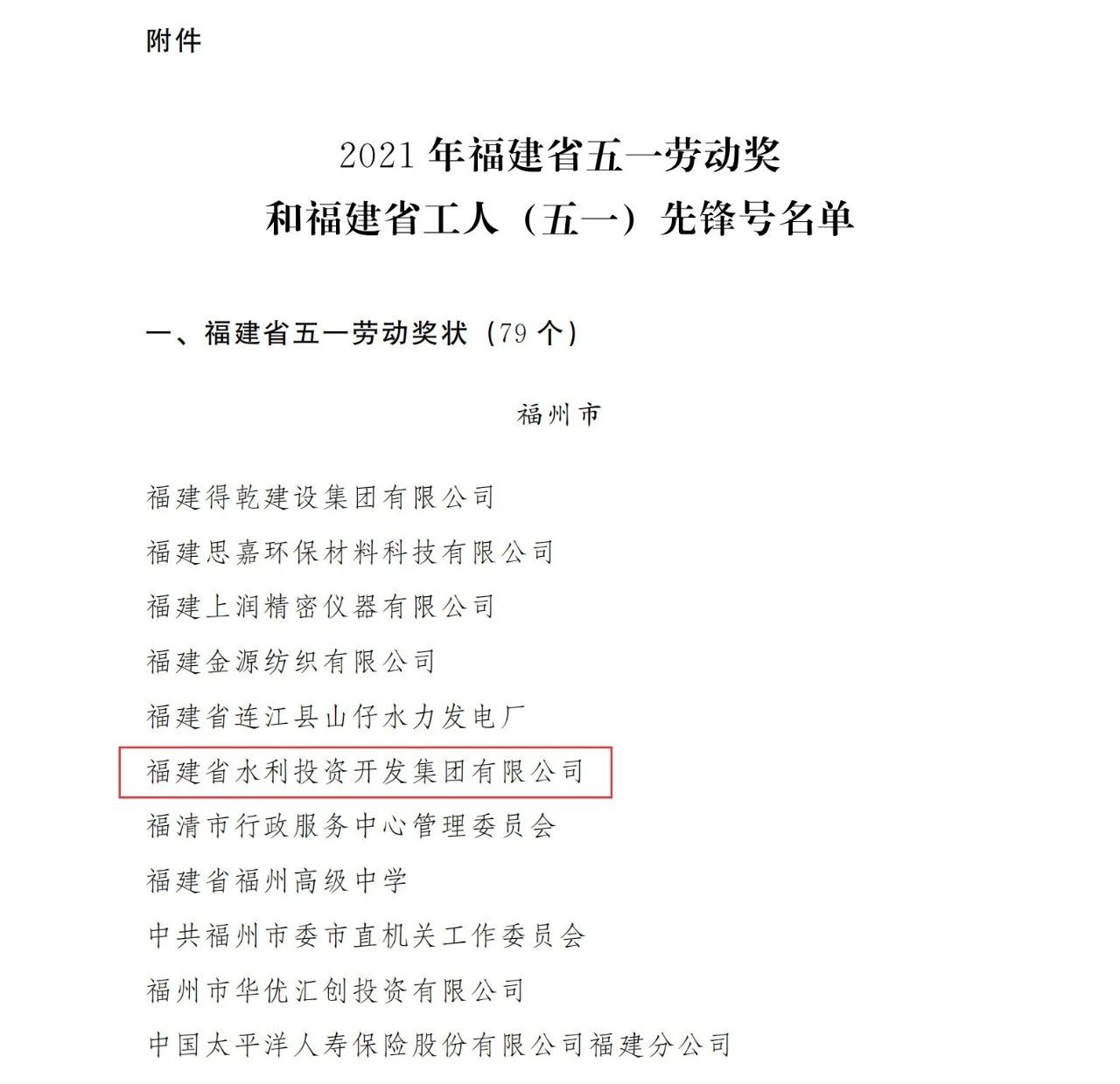喜報!福建水投集團榮獲2021年五一勞動獎狀